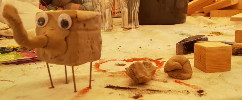 We timmeren, we boetseren en we schilderen. We maken een dier, een bloem, een monster,... We gebruiken onze fantasie.